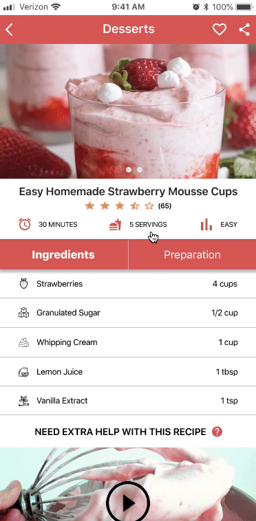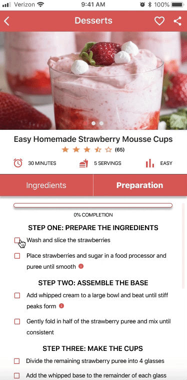 Specifically, I wanted to see how users felt about being able to customize their serving size and check off steps as they prepare meals.