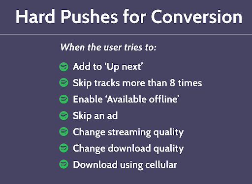 I looked closely at YouTube, Pandora, and Spotify to explore what methods they used to convert users to premium.
